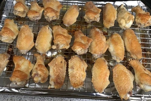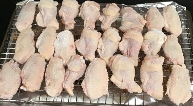 Another aspect to J Kenji Lopez Alt’s process is putting the wings in the refrigerator uncovered (on a rack) at least a few hours (preferably overnight)